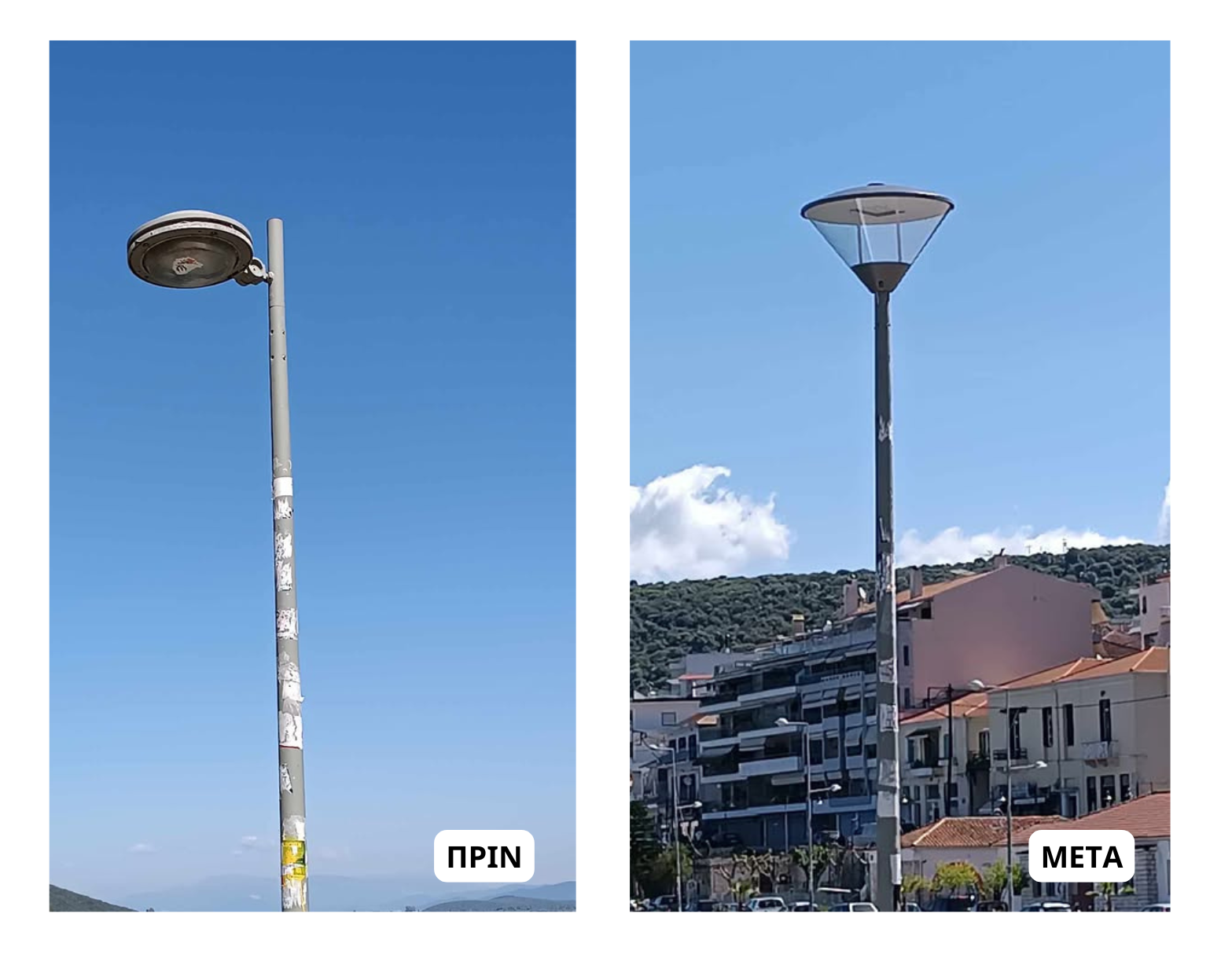 Σημειώνεται ότι τα φωτιστικά τεχνολογίας LED επιτυγχάνουν οικονομία άνω του 80% σε σχέση με τους συμβατικούς λαμπτήρες, συμβάλλοντας στη μετατροπή του συστήματος φωτισμού των κεντρικών οδών της πόλης σε «έξυπνο», προσφέροντας τη δυνατότητα διαχείρισης κάθε λαμπτήρα ξεχωριστά, με την επιλογή έναρξης/τερματισμού λειτουργίας, μεταβολής επιπέδου φωτισμού, καθώς και επίβλεψης της κατάστασης του.