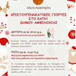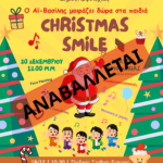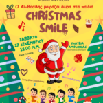 Το Σάββατο 27 Δεκεμβρίου στις 12:00 θα πραγματοποιηθεί η χριστουγεννιάτικη δράση για τα παιδιά «Christmas Smile» που αναβλήθηκε το περασμένο Σαββατοκύριακο. Το Σάββατο 27 Δεκεμβρίου στις 12.00 μ.μ. η Αγιοβασιλίτσα… Περισσότερα »