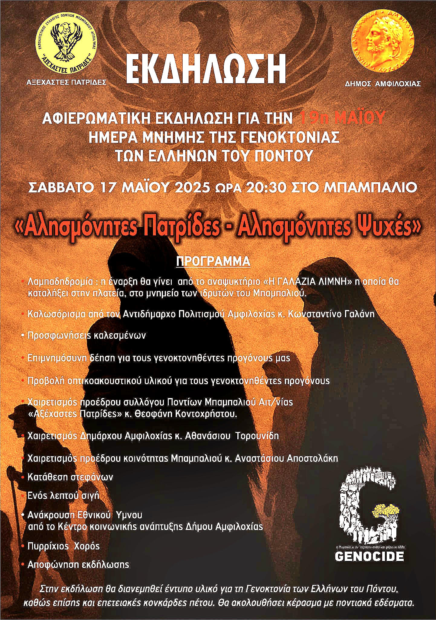 Αφιερωματική εκδήλωση για την ημέρα μνήμης των Ελλήνων του Πόντου το Σάββατο 17 Μαίου στο Μπαμπαλιό