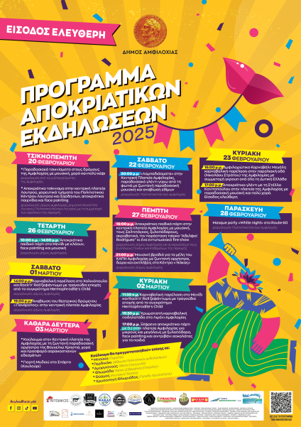 Το πρόγραμμα των αποκριάτικων εκδηλώσεων 2025 του Δήμου Αμφιλοχίας: