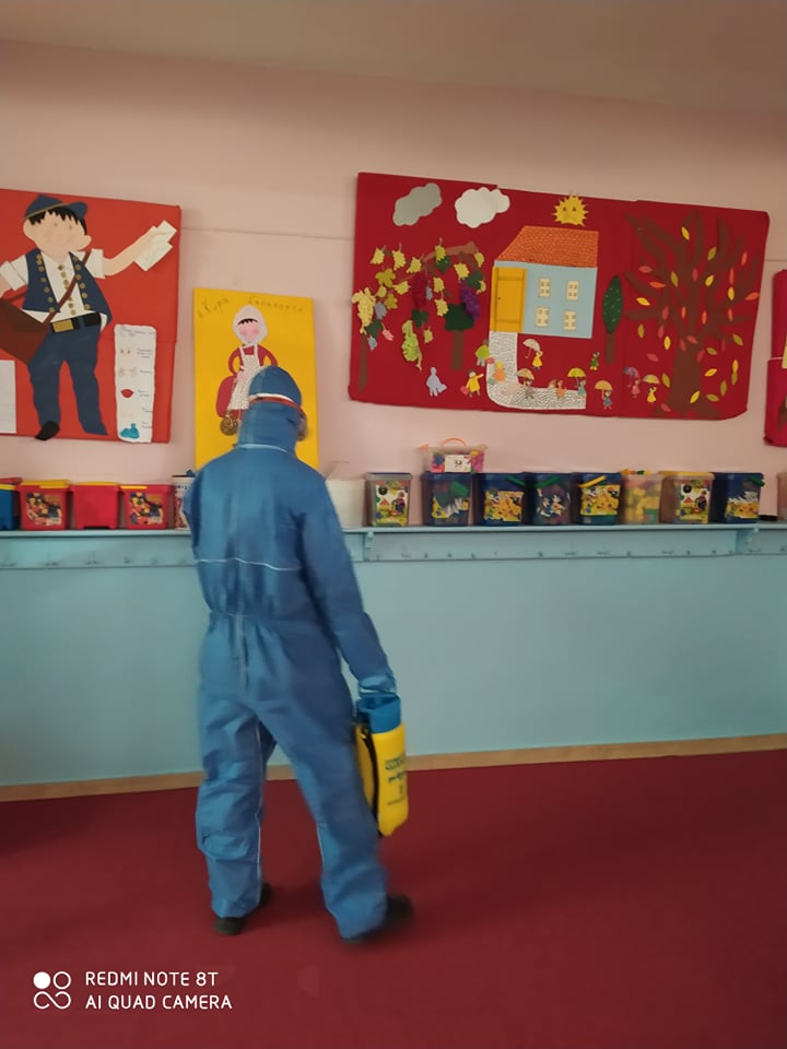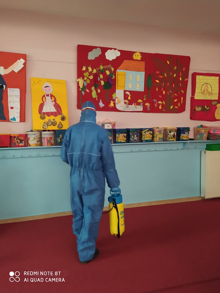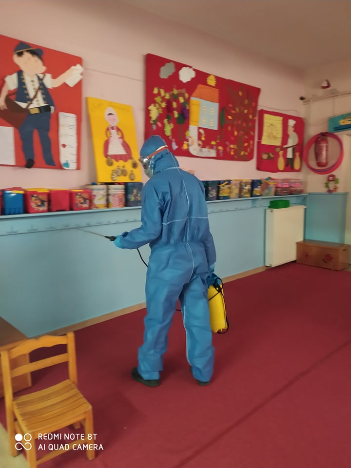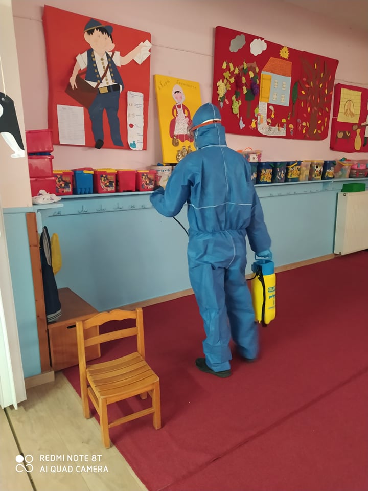 Συγκεκριμένα, πέραν της συνήθους/τακτικής απολύμανσης που είχε προηγηθεί, το Σαββατοκύριακο 7-8 Μαρτίου 2020 πραγματοποιήθηκε μικροβιοκτονία από πιστοποιημένες και εξειδικευμένες εταιρείες σε όλα τα σχολεία του Δήμου (νηπιαγωγεία, δημοτικά, γυμνάσια και λύκεια).