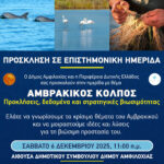Το πρόγραμμα της Ημερίδας «Αμβρακικός Κόλπος: Προκλήσεις, Δεδομένα και Στρατηγικές Βιωσιμότητας» το Σάββατο 6 Δεκεμβρίου στις 11:00 π.μ. στο Δημαρχείο Αμφιλοχίας