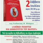 Τρίτη 12 Ιουλίου 2022 ΔΕΛΤΙΟ ΤΥΠΟΥ Τα «Παραμύθια του Βάλτου» στη Δημοτική Βιβλιοθήκη Αμφιλοχίας Η Δημοτική Βιβλιοθήκη Αμφιλοχίας «Παναγιώτης Κόκκαλης» σας προσκαλεί στην παρουσίαση του βιβλίου «Παραμύθια του… Περισσότερα »