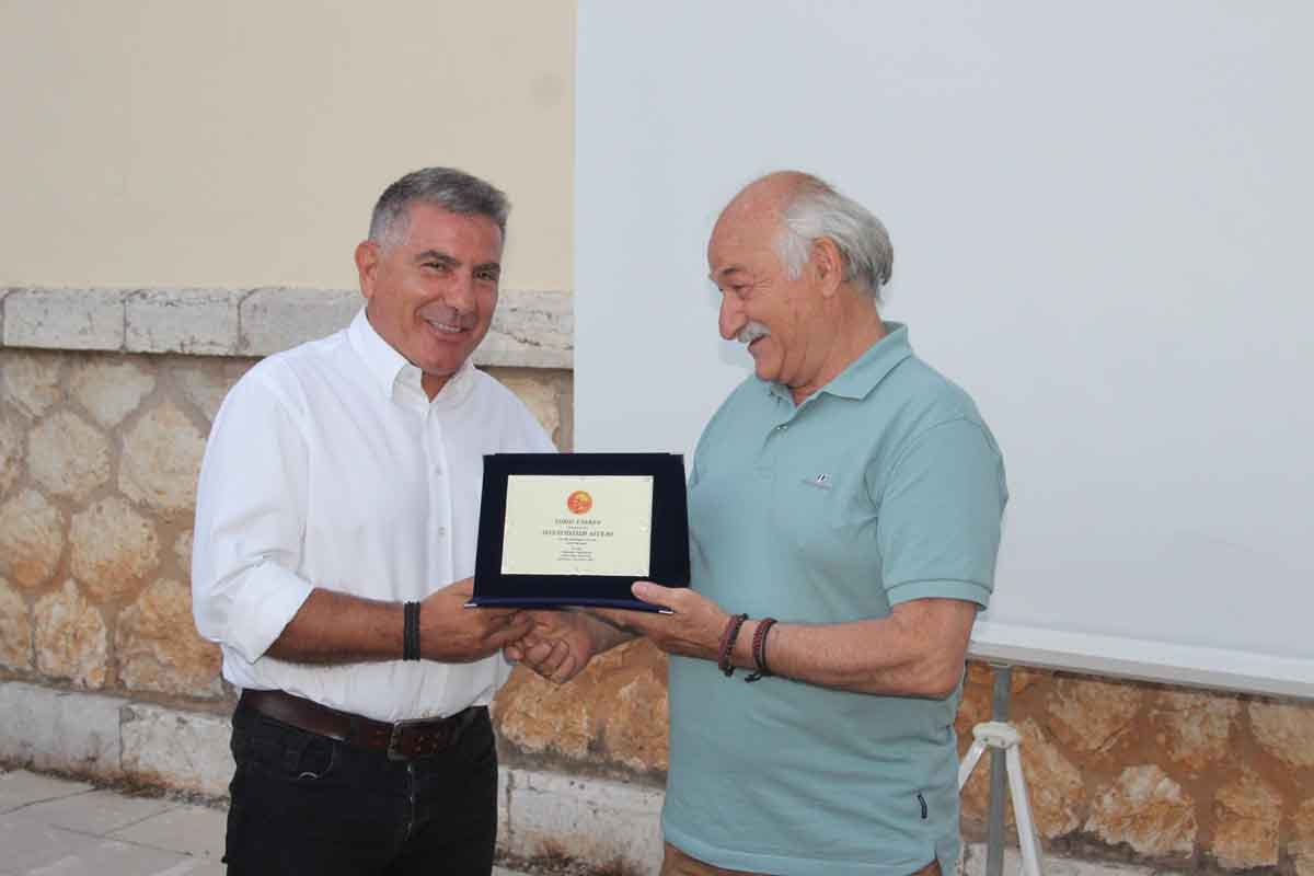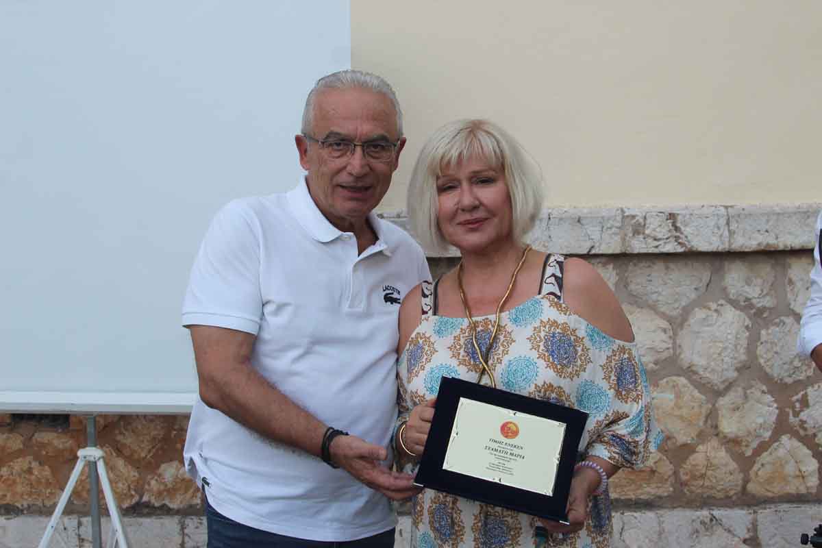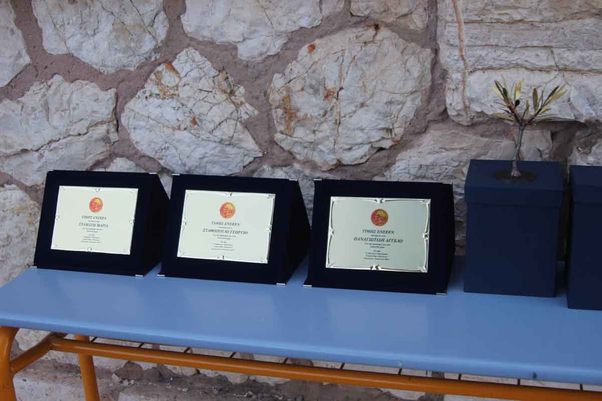 Ακολούθησαν χαιρετισμοί από τον Πρόεδρο του Πολιτιστικού Κέντρου Τηλέμαχο Καραϊσκάκη και τον επιμελητή κο Νώντα Σαρλή και στη συνέχεια πραγματοποιήθηκαν βραβεύσεις στους τιμώμενους καλλιτέχνες Μαρία Σταμάτη, Γεώργιο Σταθόπουλο και Άγγελο Παναγιωτίδη, ενώ απονεμήθηκαν αναμνηστικά πρωτότυπα γλυπτά έργα ελιάς, από μπρούτζο και χαλκό, προσφορά του καλλιτέχνη Άγγελου Παναγιωτίδη.