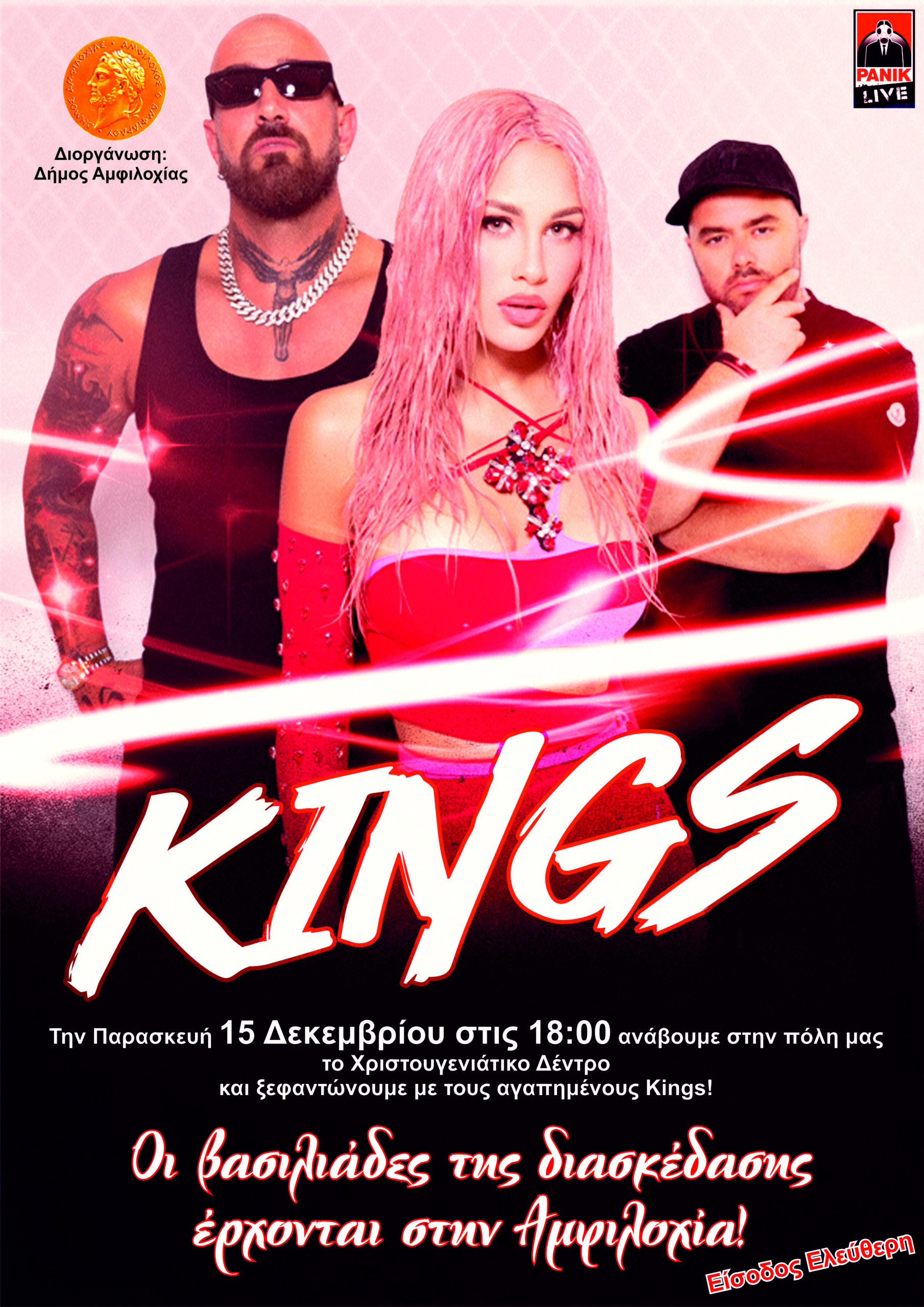 Την Παρασκευή 15 Δεκεμβρίου στις 18:00 στην κεντρική πλατεία Αμφιλοχίας, ανάβουμε το χριστουγεννιάτικο δέντρο της πόλης μας και υποδεχόμαστε τους βασιλιάδες της διασκέδασης Kings σε μια «δυνατή» συναυλία γεμάτη κέφι! Τους μικρούς μας φίλους τους περιμένουν παιχνίδια, κατασκευές και χειροτεχνίες, facepainting, πάνελ φωτογράφισης και πολλές άλλες εκπλήξεις!