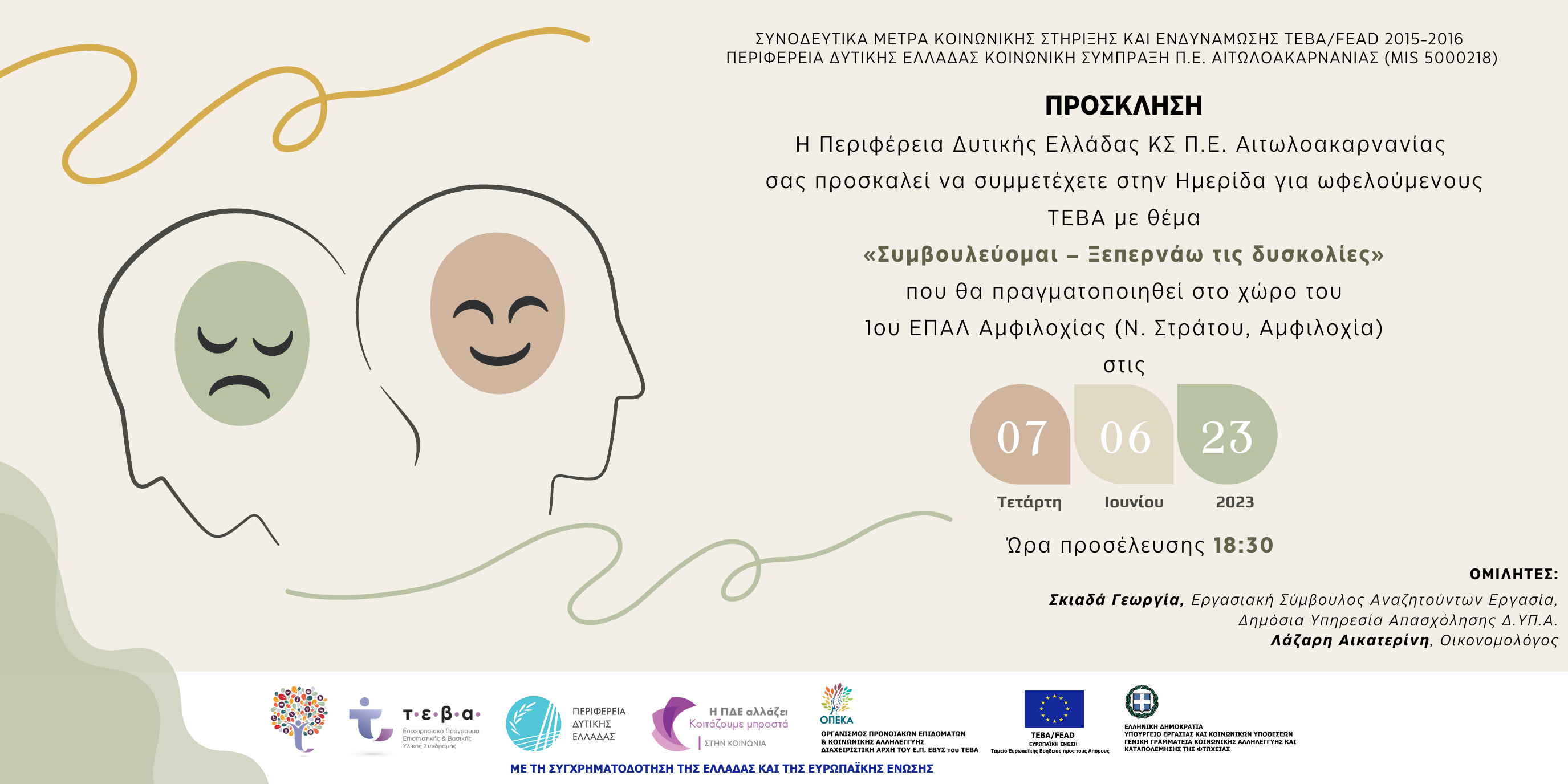 Ημερίδα για ωφελούμενους ΤΕΒΑ στο Δήμο Αμφιλοχίας “Συμβουλεύομαι – Ξεπερνάω τις δυσκολίες”
