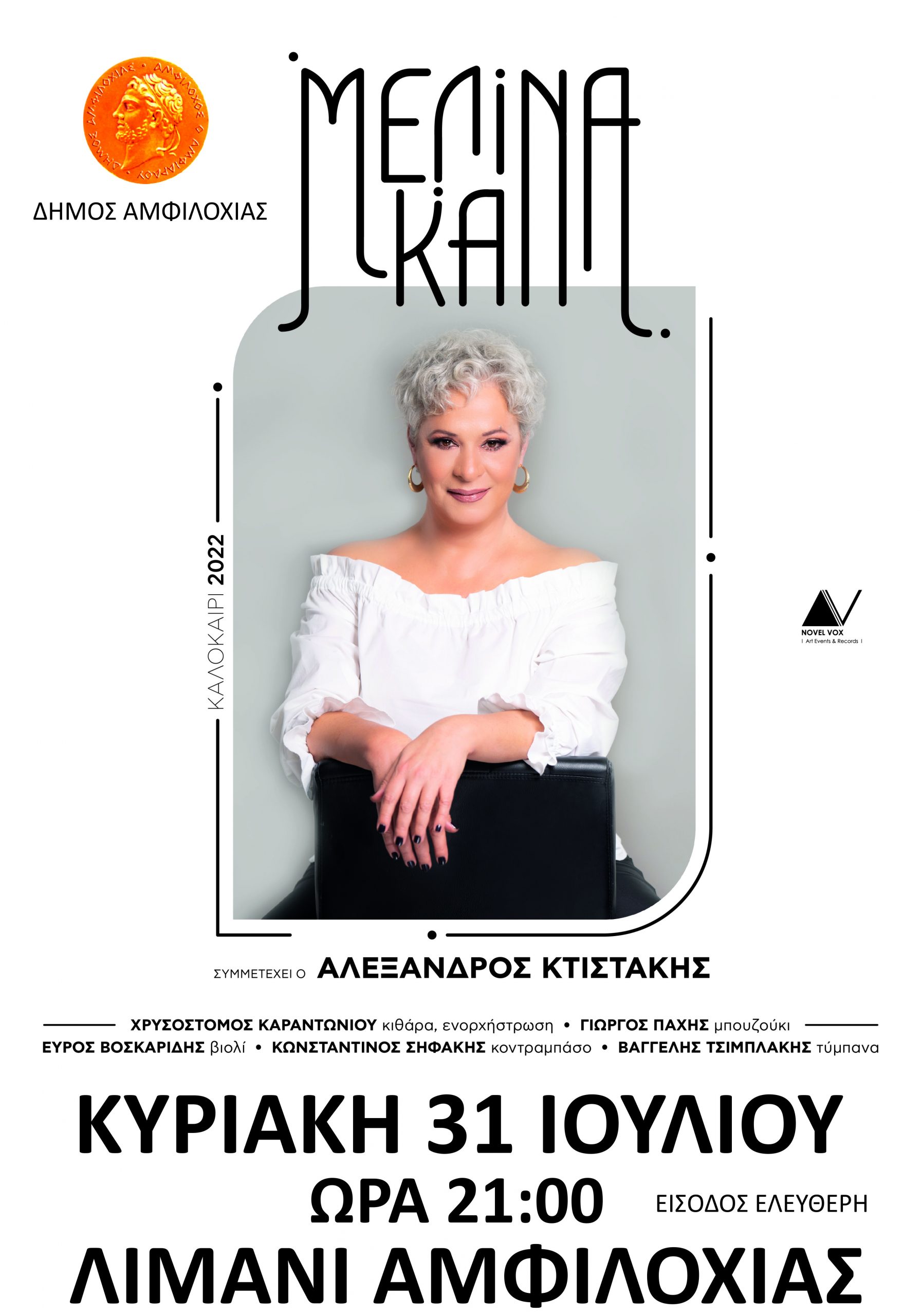 Οι μέρες μετρούν αντίστροφα για τη συναυλία με τη Μελίνα Κανά στην Αμφιλοχία, την Κυριακή 31 Ιουλίου 2022 στις 21:00, στο Λιμάνι!
