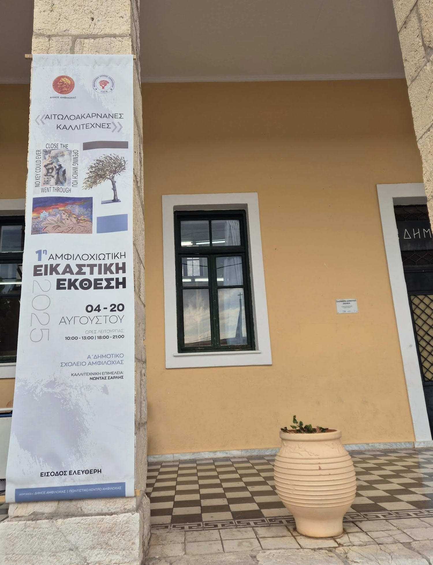 Μεγάλη επισκεψιμότητα γνωρίζει η «1η Αμφιλοχιώτικη Εικαστική Έκθεση – Αιτωλοακαρνάνες καλλιτέχνες» του Δήμου Αμφιλοχίας που πραγματοποιείται σε συνεργασία με το Πολιτιστικό Κέντρο Αμφιλοχίας στο 1ο Δημοτικό Σχολείο Αμφιλοχίας στο πλαίσιο των Πανακαρνανείων 2025.