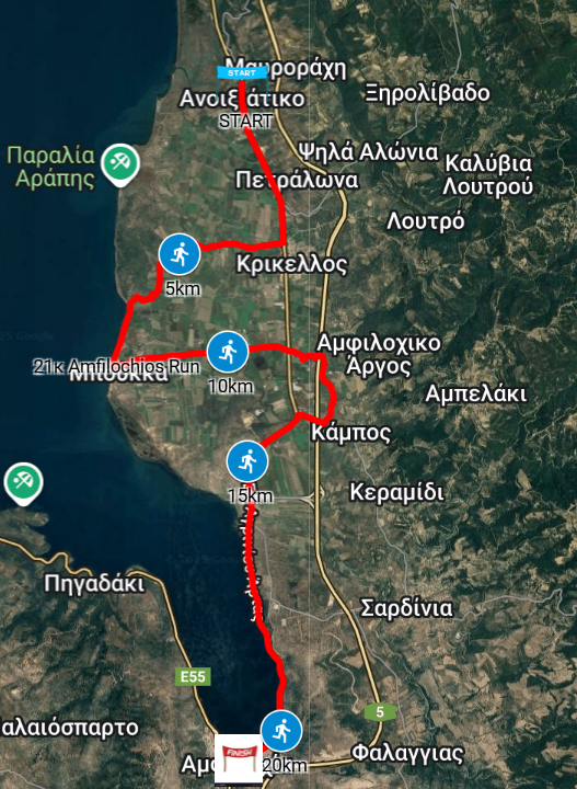 Οι δρομείς θα διασχίσουν μια διαδρομή 20 χλμ. με σημείο εκκίνησης το χωριό Ανοιξιάτικο και τερματισμό στην κεντρική πλατεία Αμφιλοχίας.