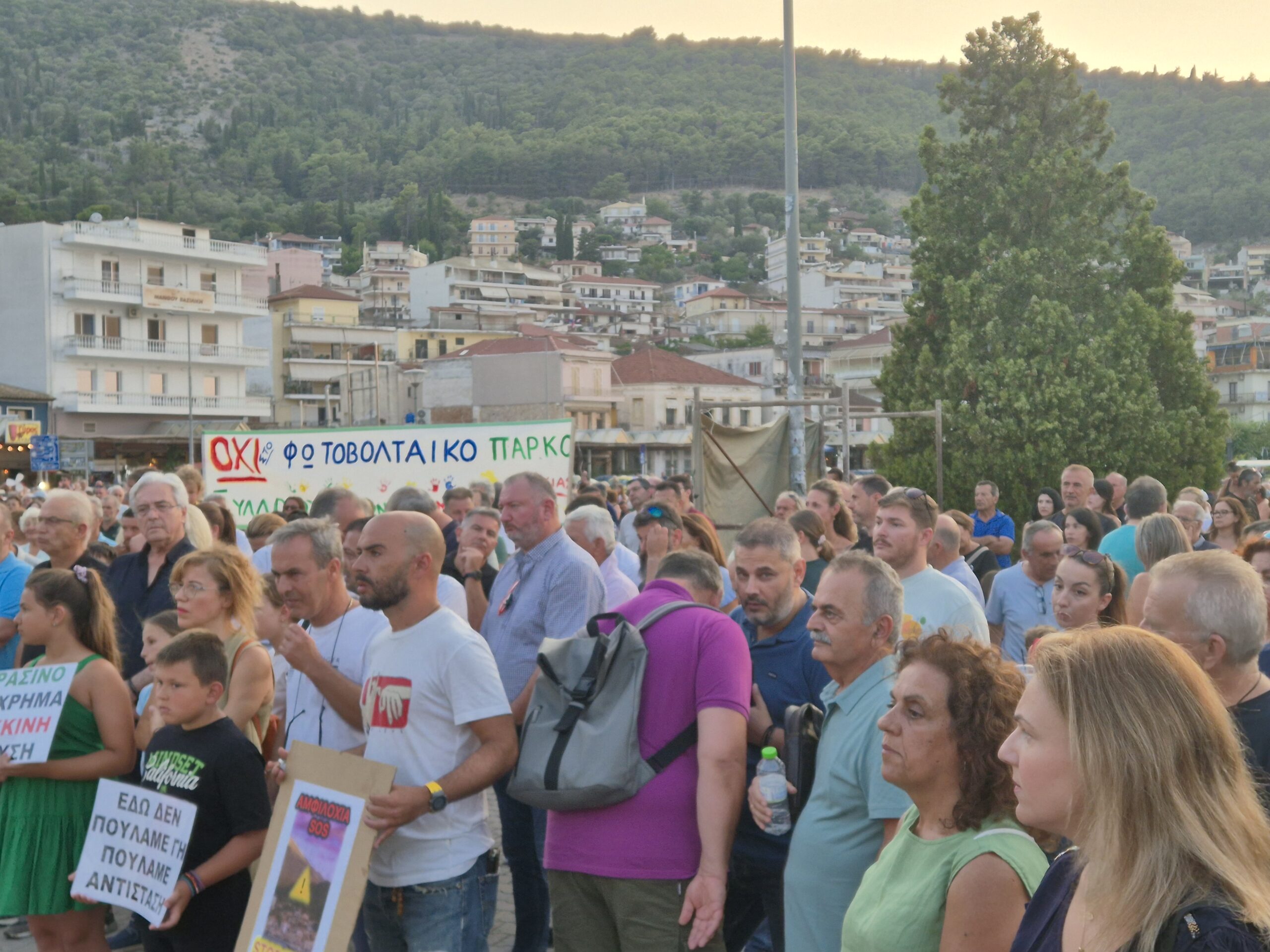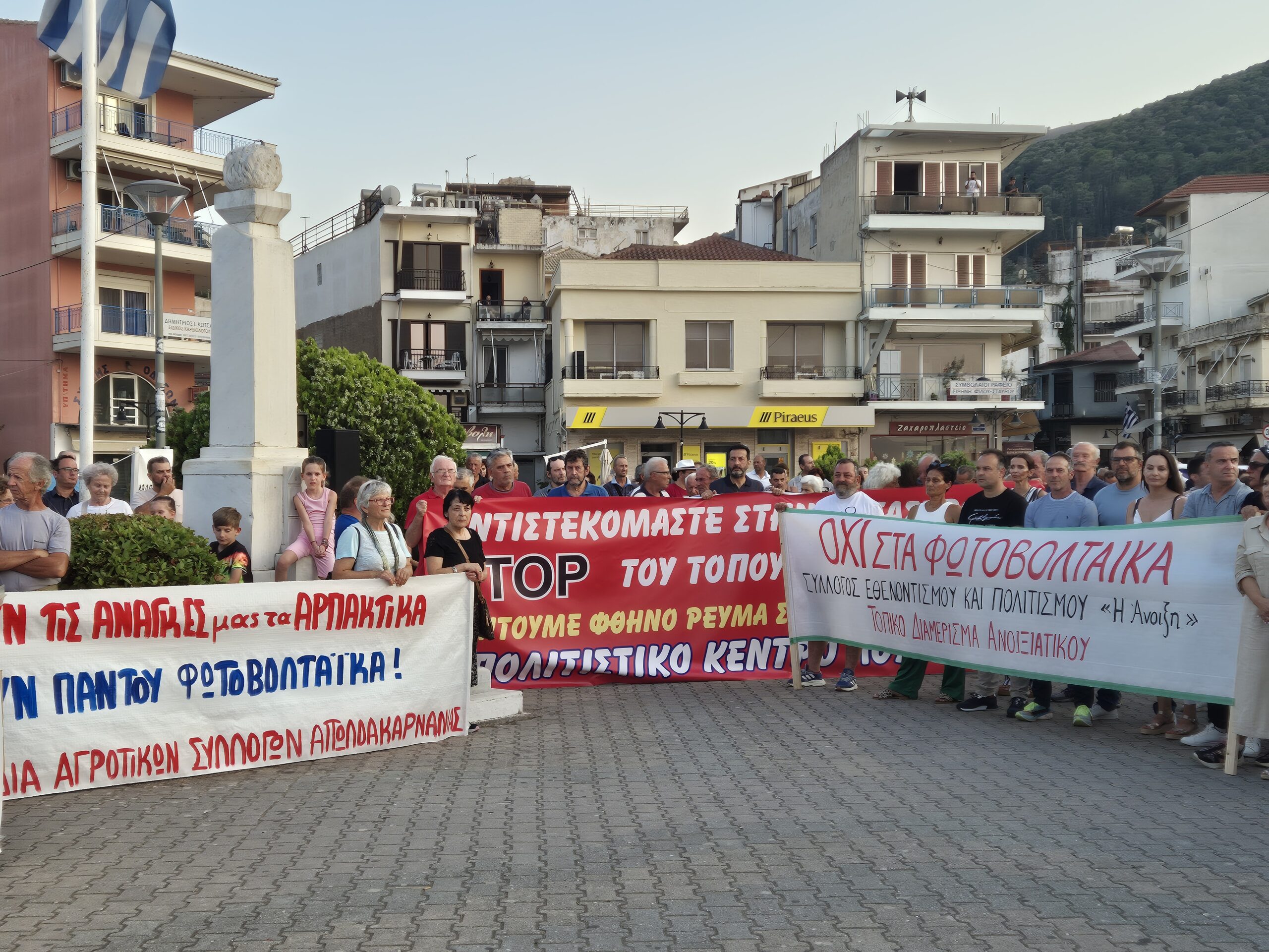 Με συνθήματα και πανό πολίτες όλων των ηλικιών συγκεντρώθηκαν στην κεντρική πλατεία και τάχθηκαν κατά της άναρχης ανάπτυξης φωτοβολταϊκών και ανεμογεννητριών, εκφράζοντας την αγωνία τους για τα έργα ΑΠΕ που χωροθετούνται χωρίς σχεδιασμό στην ευρύτερη περιοχή.