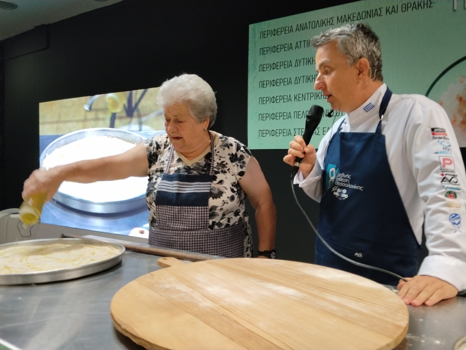 Ιδιαίτερα ξεχωριστή ήταν η στιγμή που ο Δήμος Αμφιλοχίας παρουσίασε στην εκδήλωση “Γεύσεις Ελλαδας-τοπικα προϊόντα” το Τμήμα Γυναικών – Χειροτεχνίας του Μορφωτικού Εξωραϊστικού Ομίλου Περδικακίου, με την κα Σοφία Γρέντζελου να κλέβει τις εντυπώσεις, παρασκευάζοντας ζωντανά χειροποίητο τραχανά και παραδοσιακή τραχανόπιτα, ξεσηκώνοντας το κοινό με τον αυθορμητισμό της και ερμηνεύοντας παράλληλα παραδοσιακά τραγούδια της περιοχής μας.