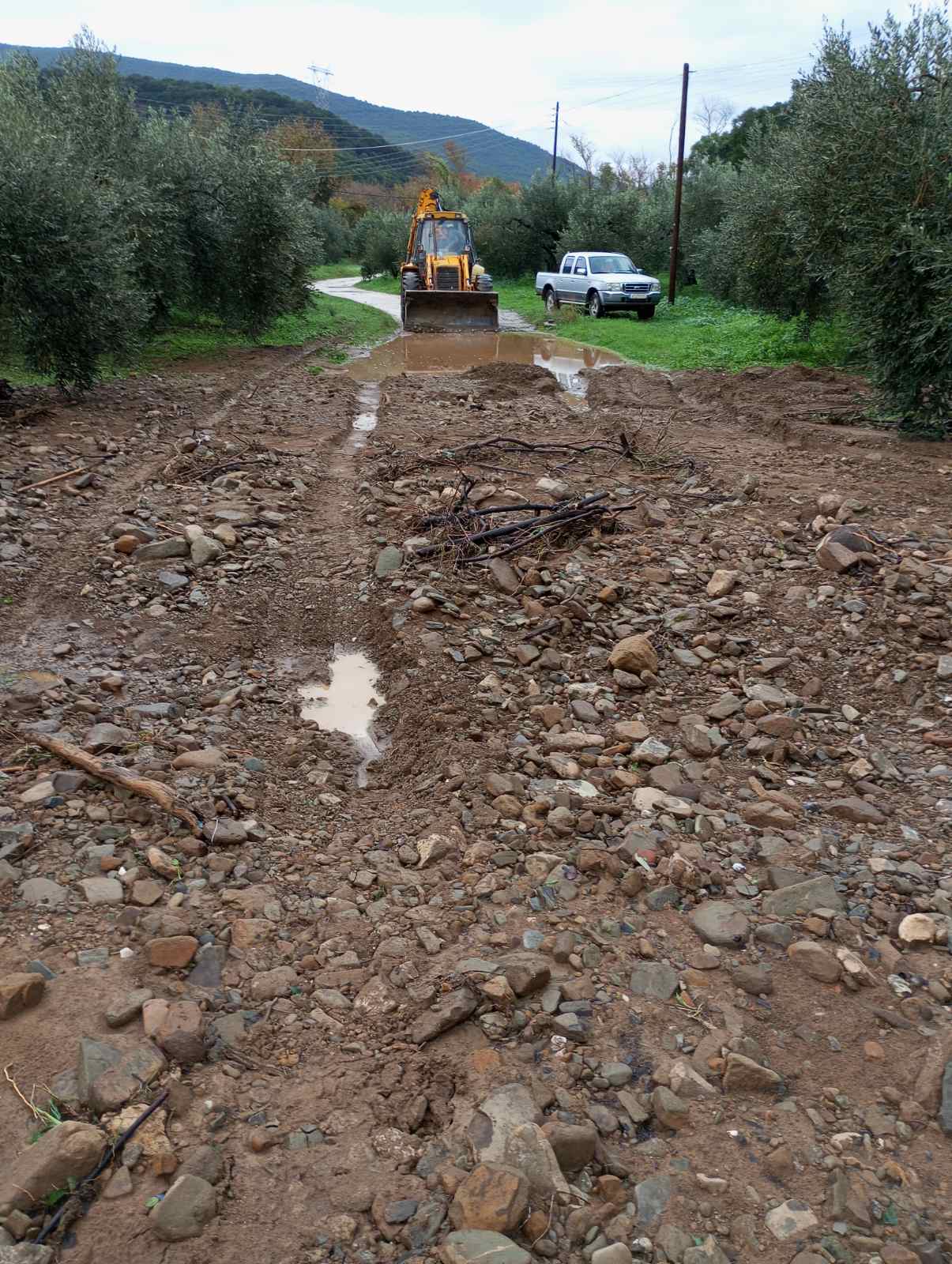 Οι παρεμβάσεις καθαρισμού από τα μηχανήματα της Τεχνικής Υπηρεσίας συνεχίζονται, αποκαθιστώντας τα όποια προβλήματα προκάλεσε η έντονη βροχόπτωση.