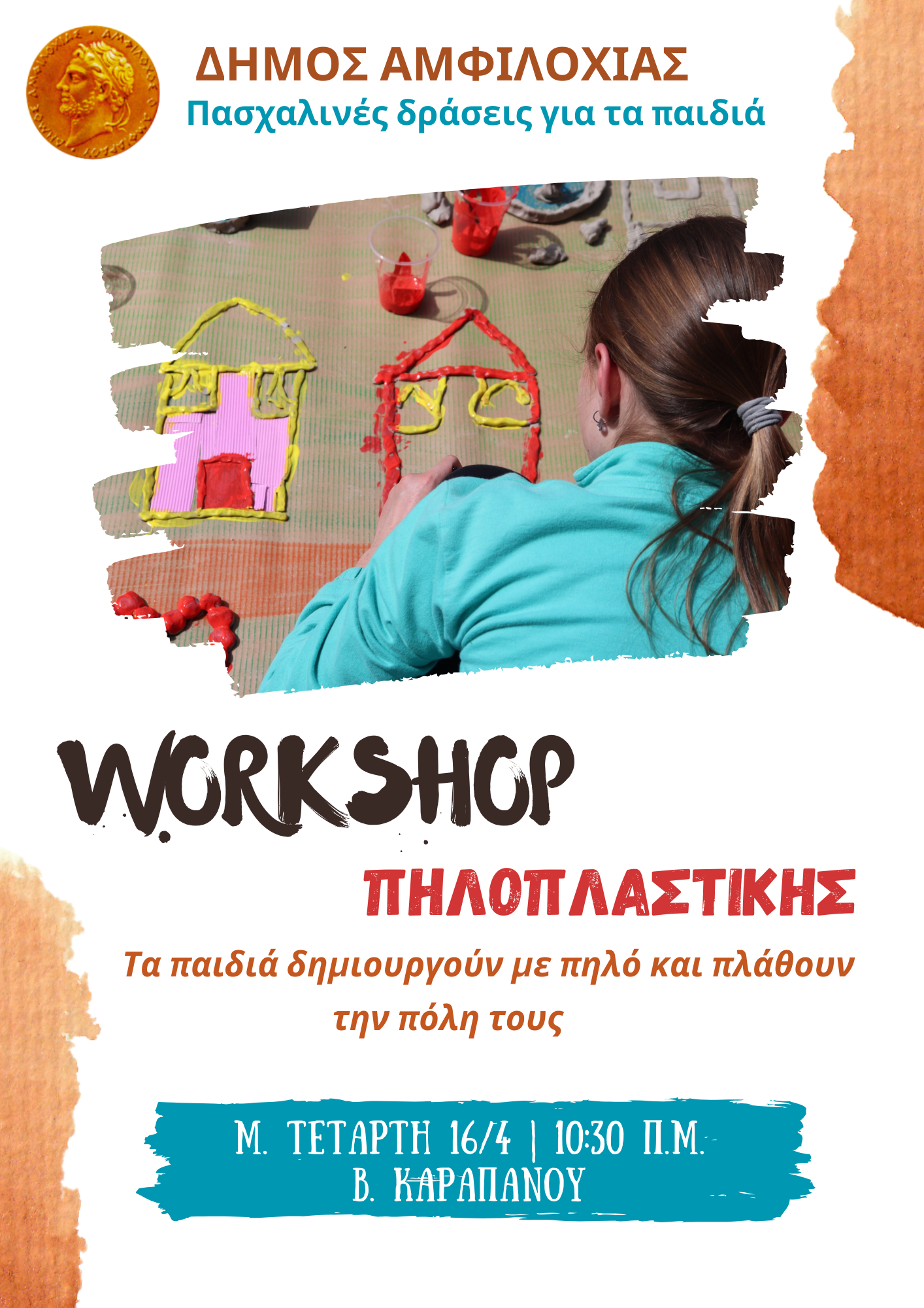 Στη συνέχεια θα πραγματοποιηθεί καλλιτεχνική δράση, και συγκεκριμένα εργαστήρι πηλοπλαστικής, όπου τα παιδιά θα πλάσουν με πηλό σε έναν υπαίθριο καμβά από χαρτόνι την πόλη τους παράλληλα με δράση face painting για μικρούς και μεγάλους με ανοιξιάτικα και πασχαλινά χρώματα.