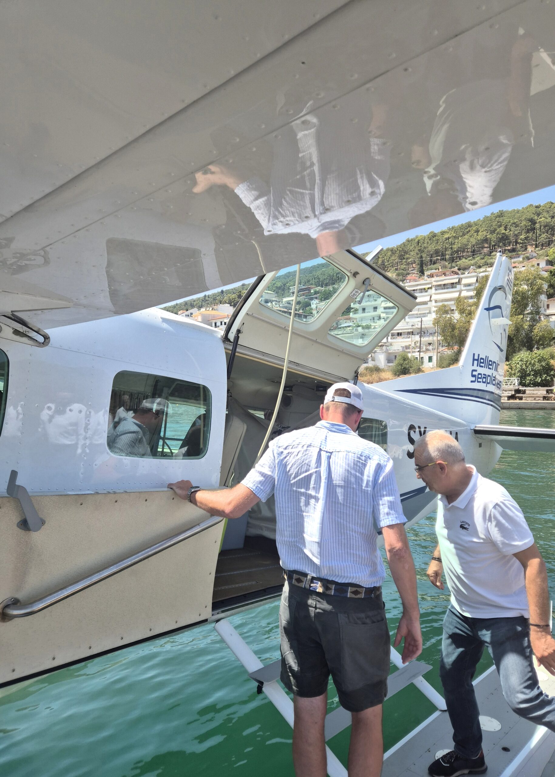 Το υδροπλάνο της εταιρείας Hellenic Seaplanes, απογειώθηκε σήμερα από τα Μέγαρα και έπειτα από 50′ και μια εντυπωσιακή πάνω από την Αμφιλοχία και τον Αμβρακικό Κόλπο προσθαλασσώθηκε στις 12:00 το μεσημέρι στο αδειοδοτημένο υδάτινο πεδίο της Αμφιλοχίας.