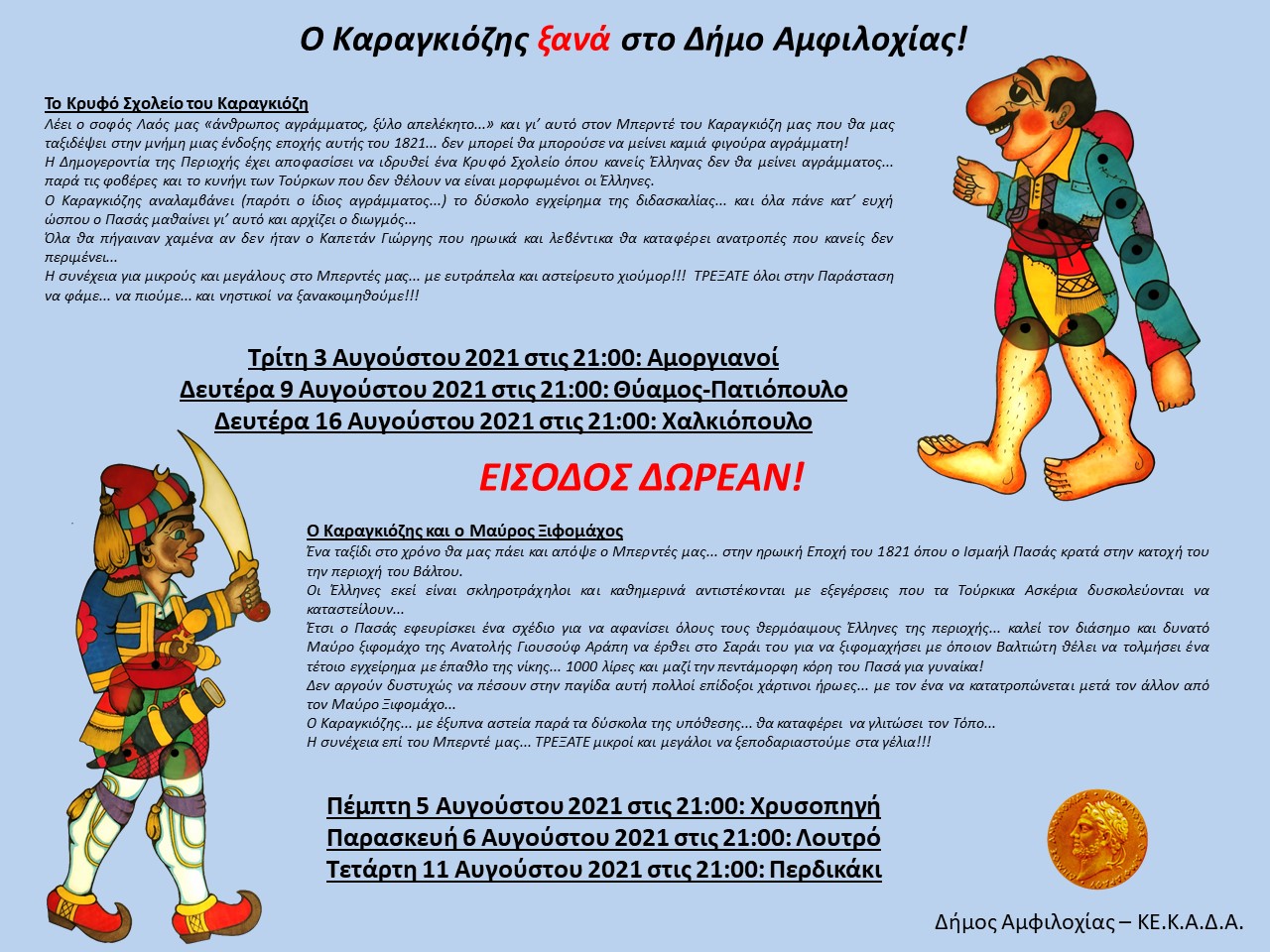 Πρόγραμμα δωρεάν παραστάσεων του Καραγκιόζη στο Δήμο Αμφιλοχίας