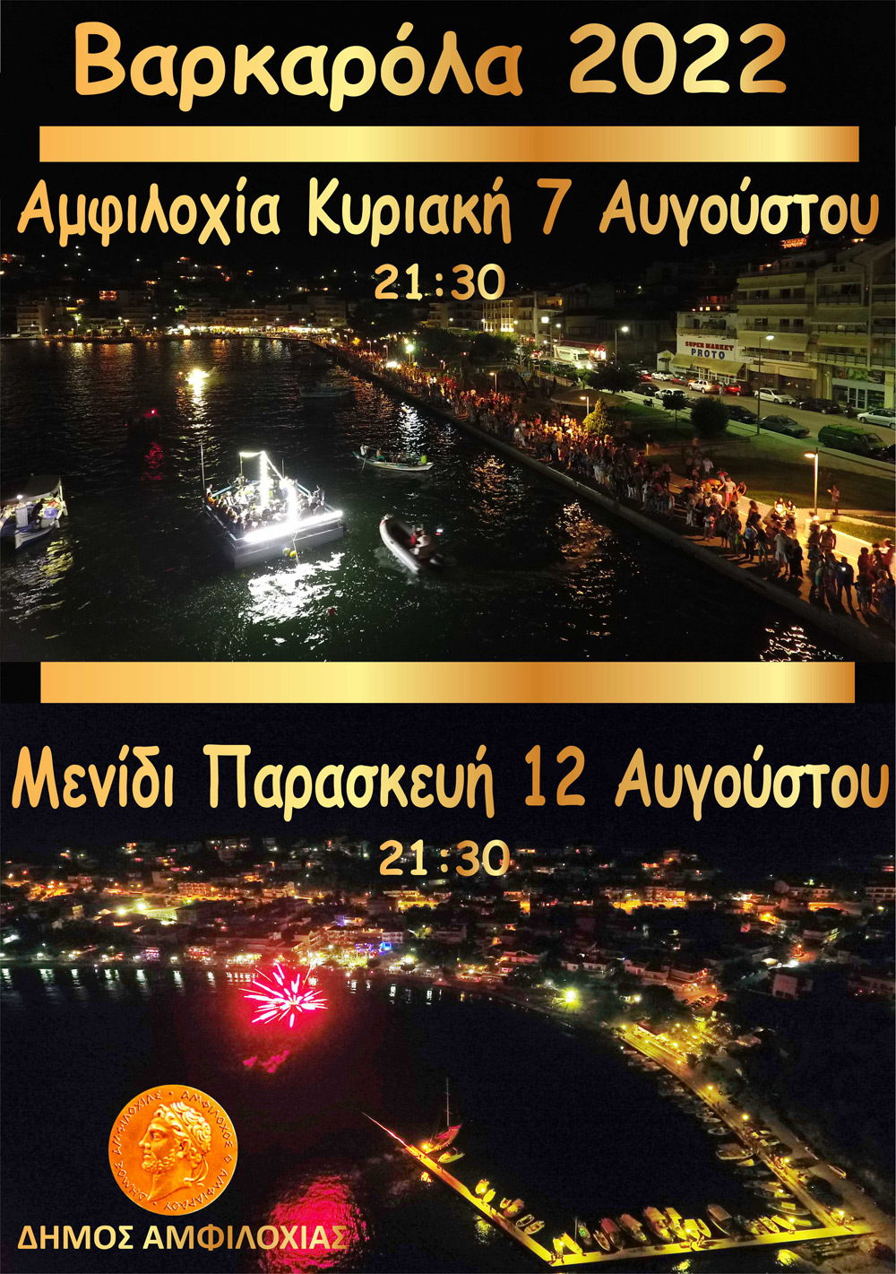 Ο Δήμος Αμφιλοχίας σας προσκαλεί στη μεγάλη γιορτή της μουσικής και της θάλασσας, στη Βαρκαρόλα της Αμφιλοχίας και τη Βαρκαρόλα του Μενιδίου!