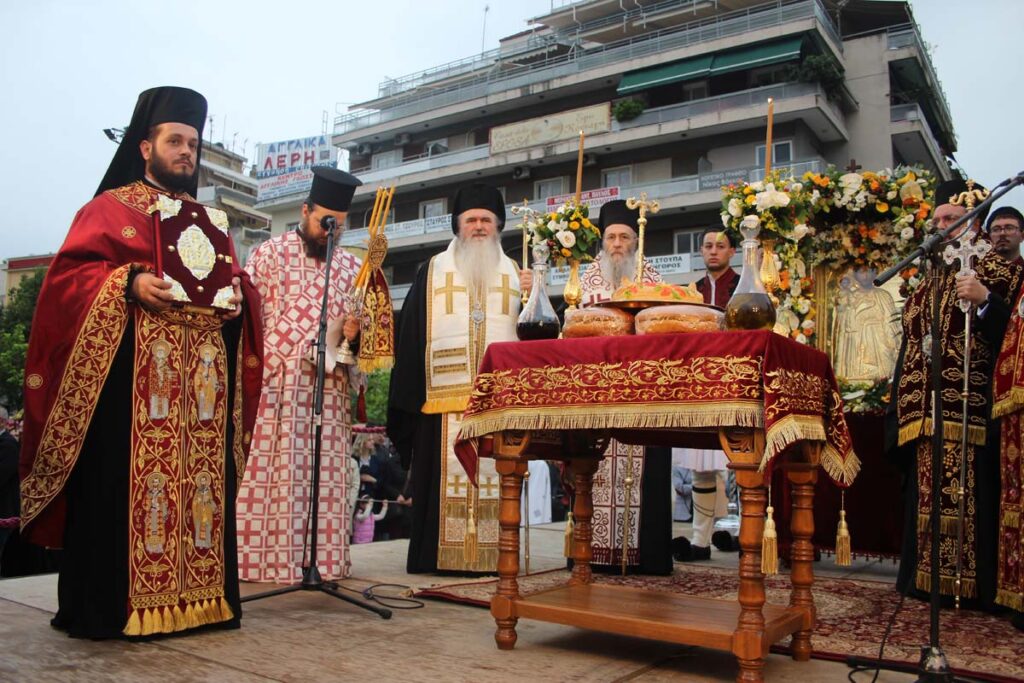 Στη λιτάνευση του Ιερού Λειψάνου και Εικόνας που πραγματοποιήθηκε το απόγευμα της Πέμπτης στους κεντρικούς δρόμους της πόλης, συμμετείχε και η Δημοτική Φιλαρμονική Αμφιλοχίας, η οποία μαζί με τις Φιλαρμονικές του Δήμου Αγρινίου και Ηγουμενίτσας συνόδευσαν με εμβατήρια τη μεγάλη πομπή, αποδίδοντας τις αρμόζουσες τιμές στη θρησκευτική γιορτή.