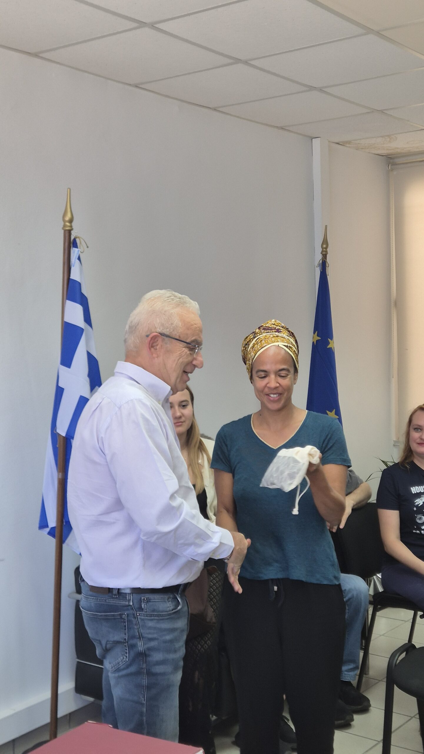 Στο τέλος προσέφεραν στον Δήμαρχο δώρα και αναμνηστικά από τις χώρες τους ευχαριστώντας τον Δήμο Αμφιλοχίας για τη φιλοξενία, με τον Δημάρχο να τους προσφέρει παραδοσιακά τοπικά προϊόντα.