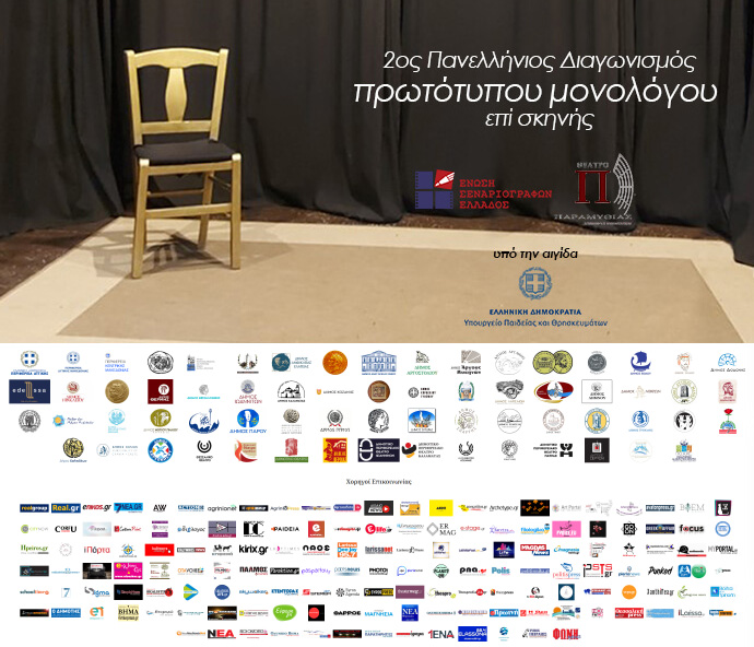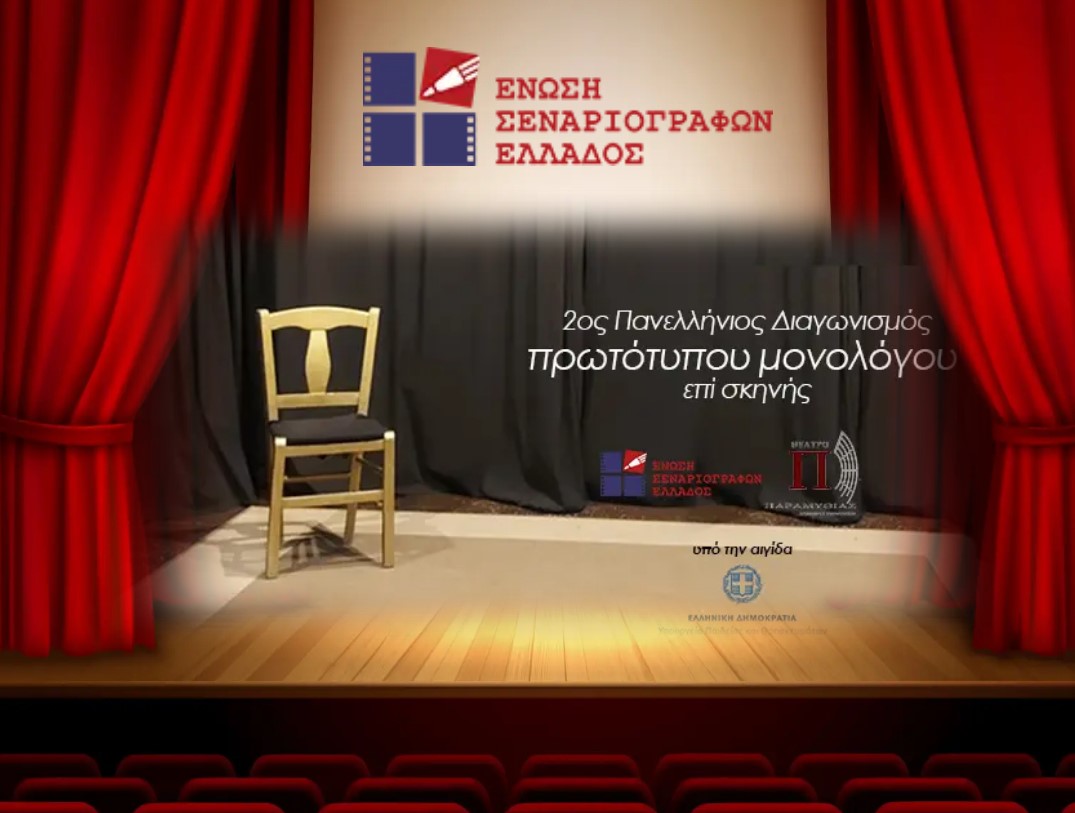 Συνεχίζονται έως τις 30 Μαρτίου 2023 οι αιτήσεις συμμετοχής στον 2ο Πανελλήνιο Διαγωνισμό Πρωτότυπων Μονολόγων επί σκηνής που πραγματοποιεί η Ένωση Σεναριογράφων Ελλάδος και τελεί υπό την αιγίδα του Υπουργείου Παιδείας και Θρησκευμάτων, του Δήμου Αμφιλοχίας καθώς και άλλων δήμων και πολιτιστικών φορέων από ολόκληρη την Ελλάδα.