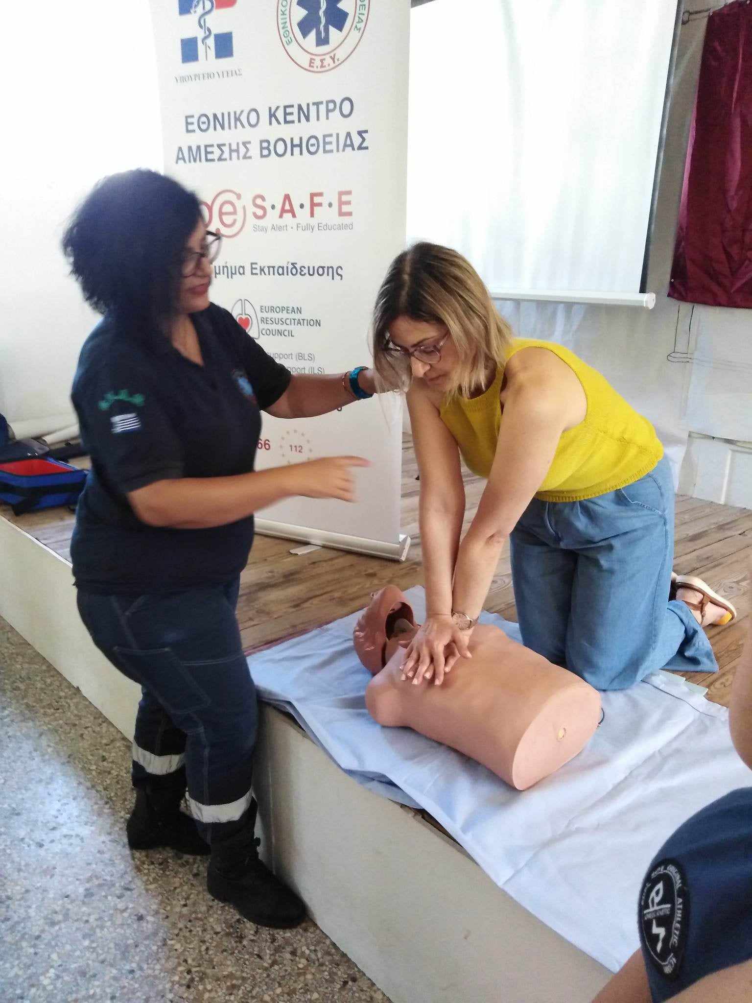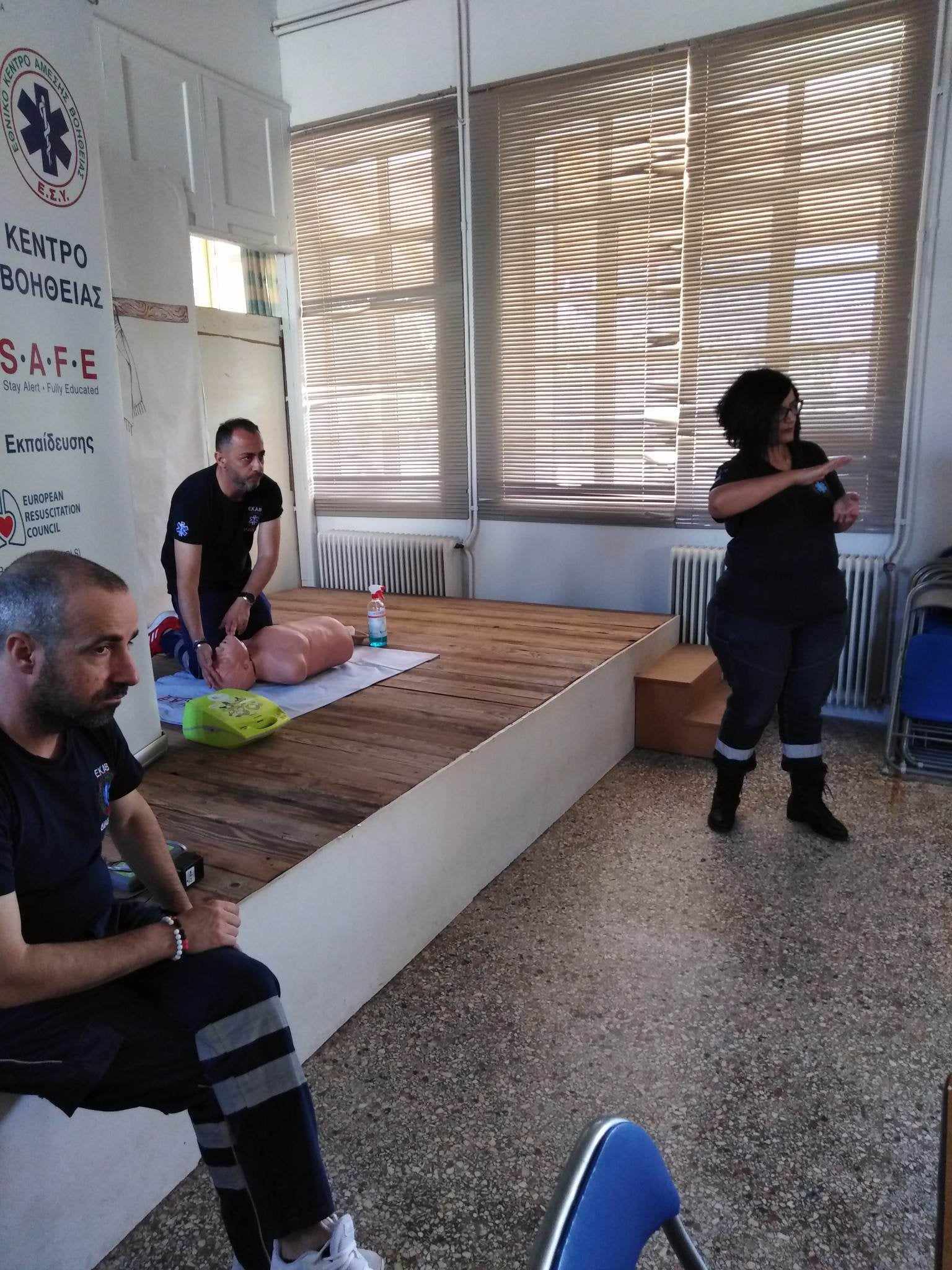 Έτσι, το πρωί της Δευτέρας, 26 Ιουνίου 2023, πραγματοποιήθηκε εκδήλωση με διασώστες του ΕΚΑΒ, οι οποίοι μετέδωσαν τις επαγγελματικές τους γνώσεις και μοιράστηκαν την εμπειρία τους με πολίτες, μαθαίνοντάς τους πώς να αναγνωρίζουν μια ανακοπή και να πραγματοποιούν ΚΑΡΠΑ και ανάνηψη με τη χρήση του απινιδωτή καθώς και τις απαιτούμενες ενέργειες που πρέπει να κάνουν σε περίπτωση πνιγμονής και τη θέση ανάνηψης.