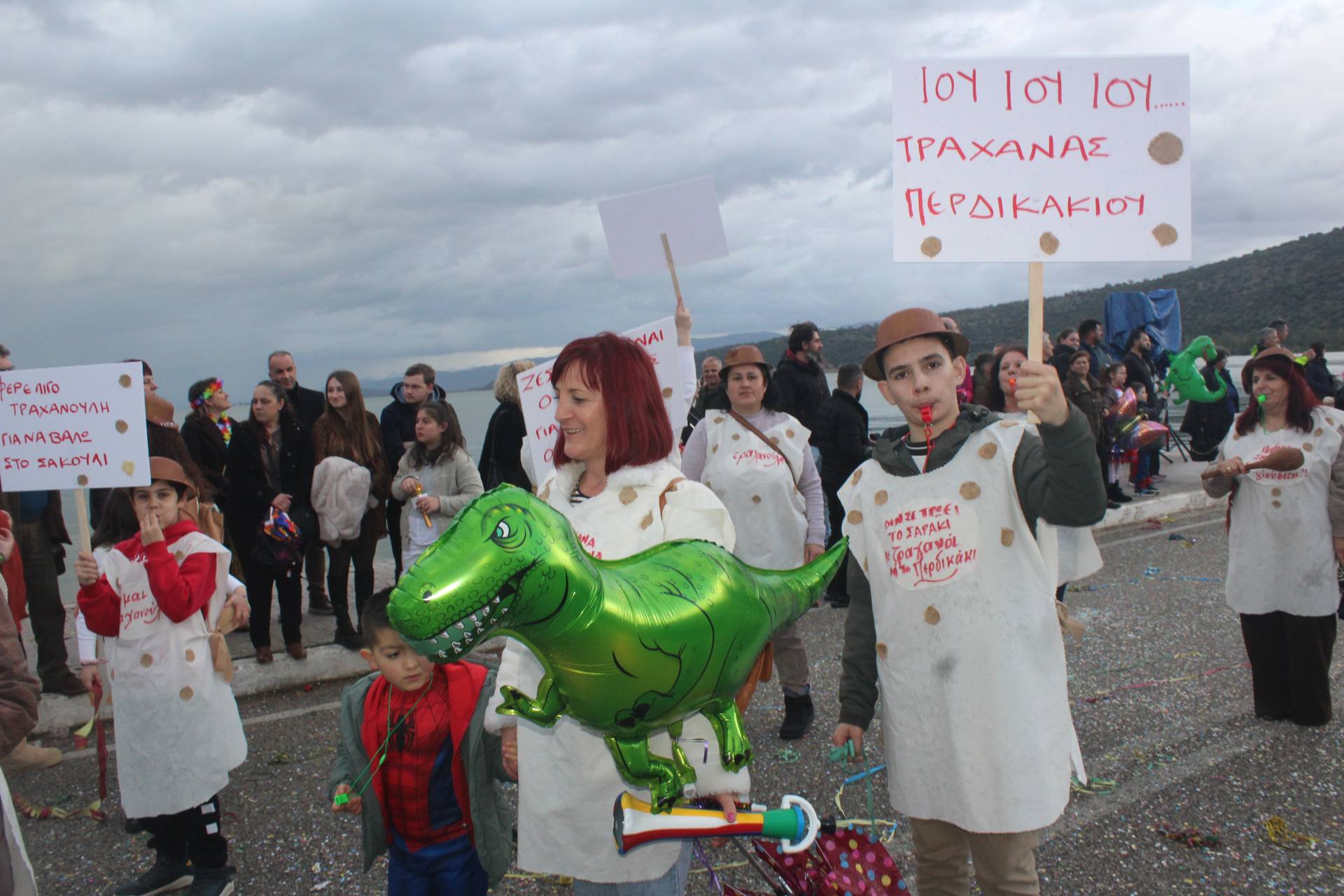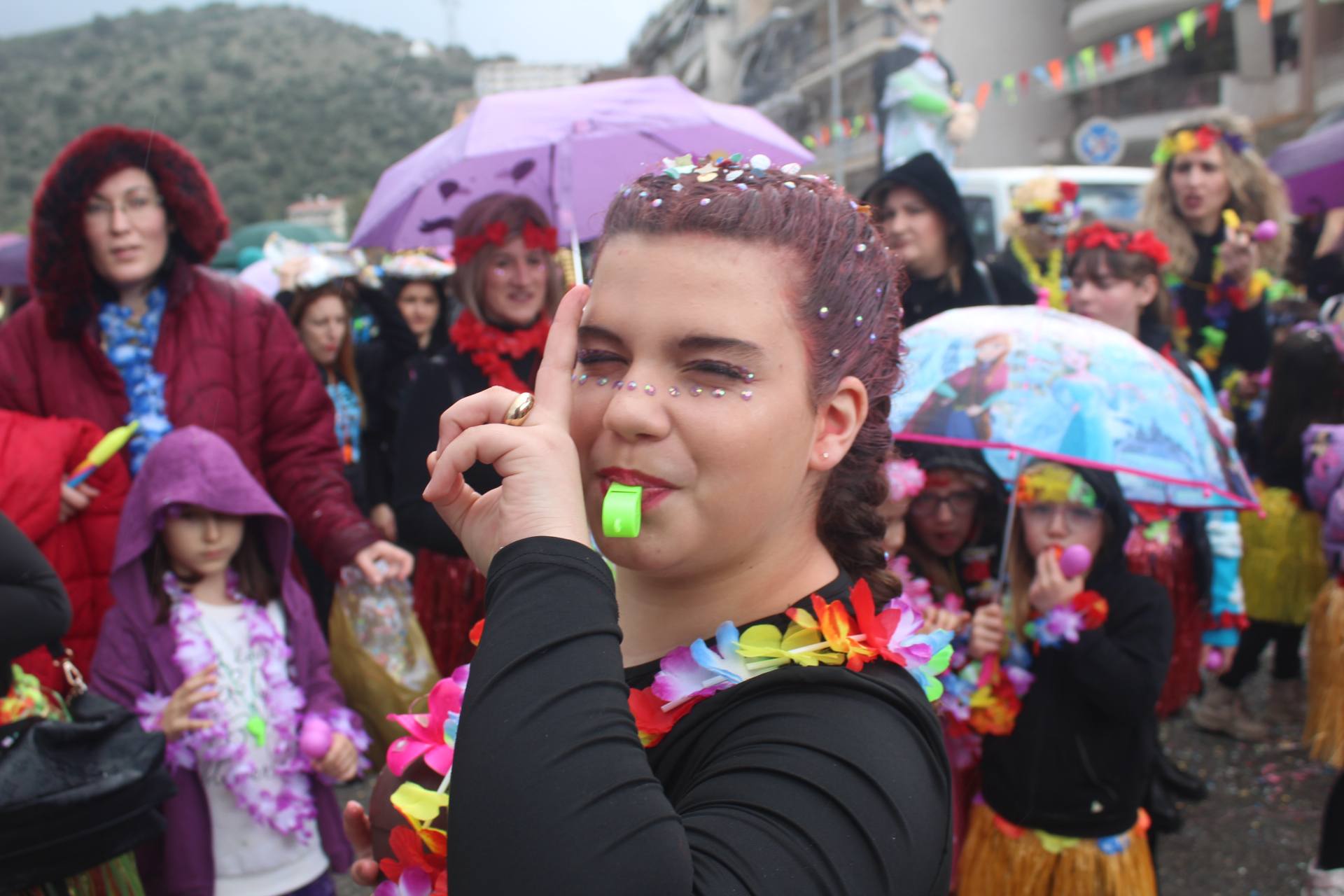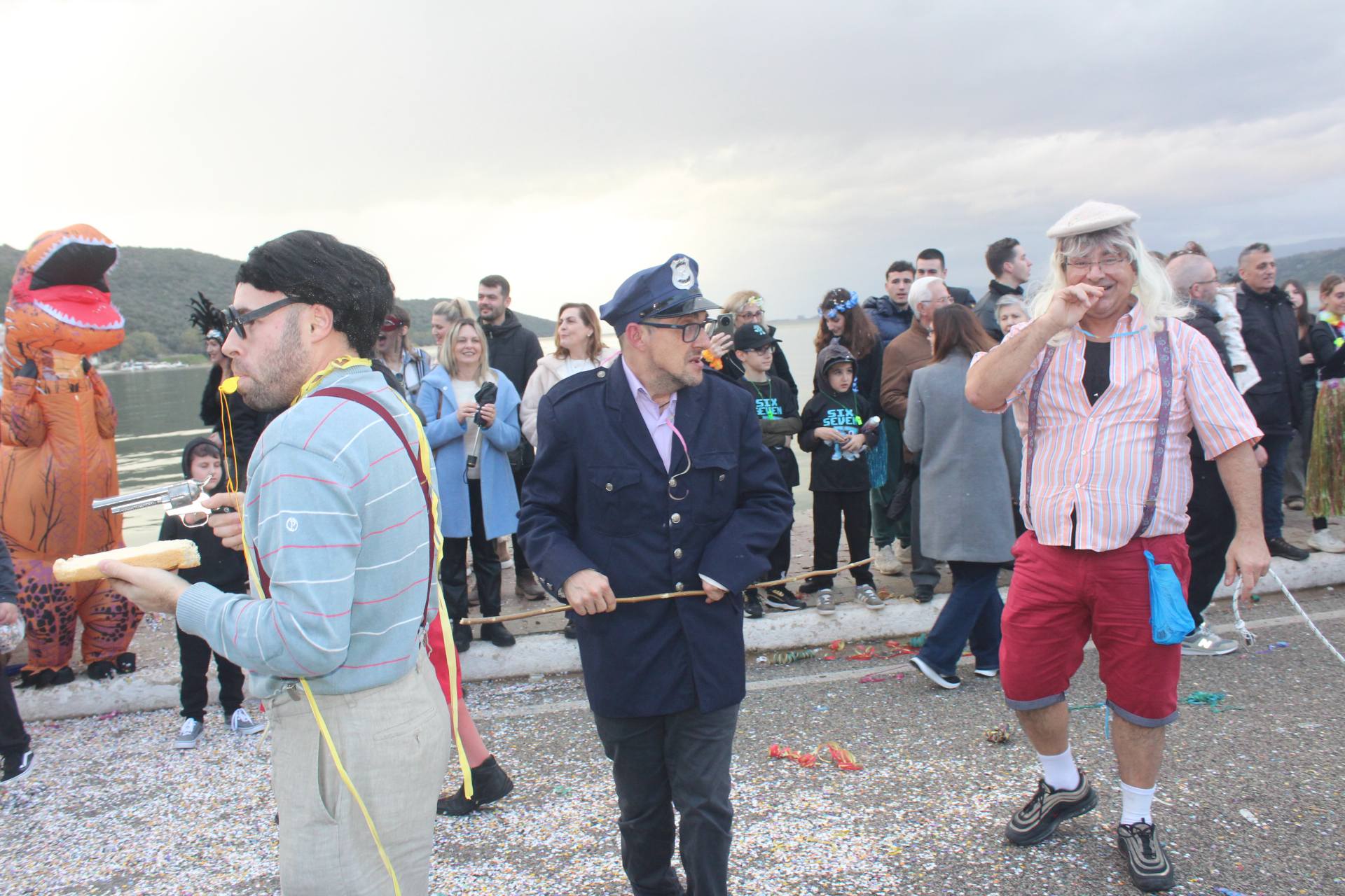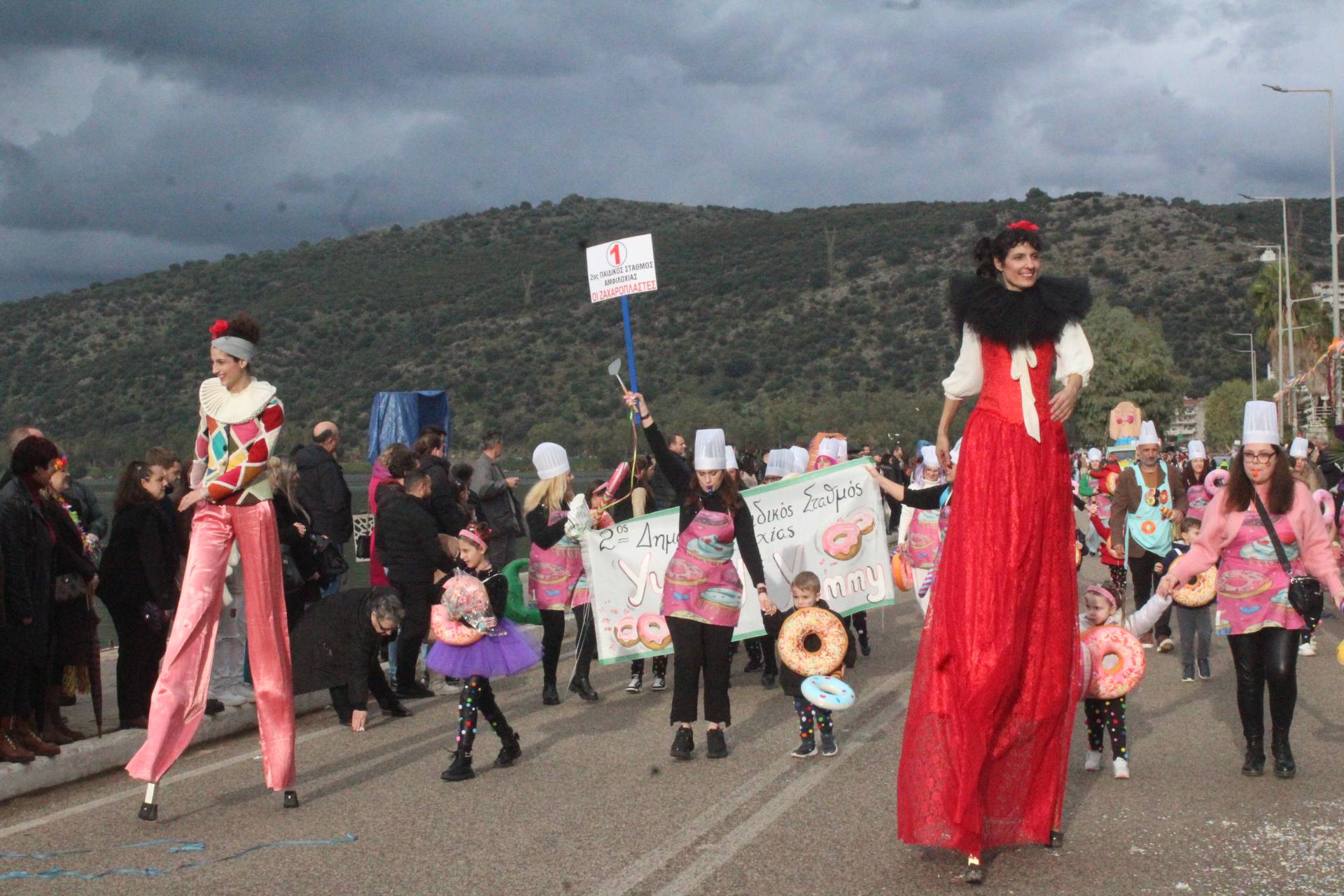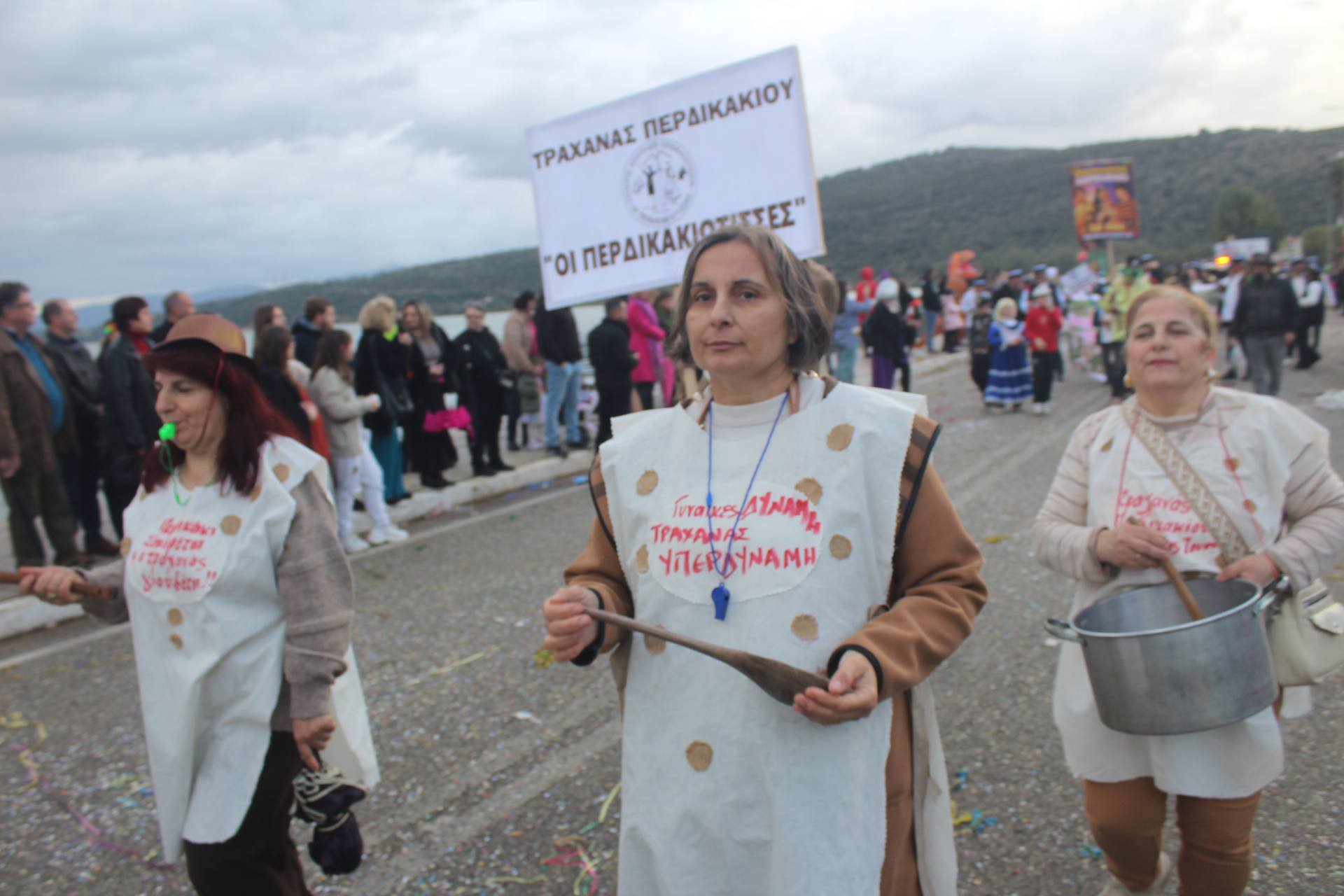 Οι καρναβαλιστές αψηφώντας τον συννεφιασμένο καιρό συμμετείχαν στην παρέλαση με ευφάνταστες μεταμφιέσεις, σκορπίζοντας κέφι και χαμόγελα στον κόσμο που συγκεντρώθηκε κατά μήκος του δρόμου.