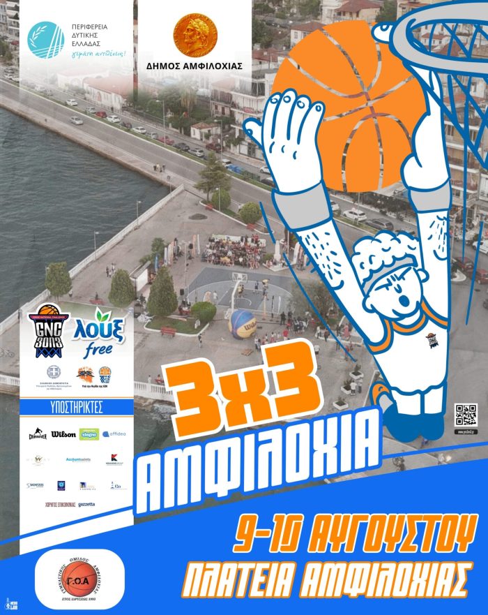 Στο πλαίσιο των Πανακαρνανείων και των καλοκαιρινών εκδηλώσεων,  η πλατεία Αμφιλοχίας μετατρέπεται στις 9 και 10 Αυγούστου σε ένα εντυπωσιακό αθλητικό σκηνικό, σε μια μοναδική τοποθεσία πάνω στο κύμα, που συνδυάζει την ομορφιά της θάλασσας με τη δύναμη του 3×3 μπάσκετ.